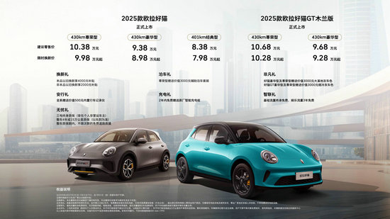 6月27日,以“經(jīng)典新生 潮而不凡”為主題的2025款歐拉好貓和2025款歐拉好貓GT木蘭版上市發(fā)布會,在位于河北保定的長城汽車技術(shù)中心啟幕。其中,2025款歐拉好貓的建議零售價區(qū)間為8.38萬—10.38萬元,限時換新價區(qū)間為7.98萬—9.98萬元;2025款歐拉好貓GT木蘭版的建議零售價區(qū)間為9.68萬—10.68萬元,限時換新價區(qū)間為9.28萬—10.28萬元。同時,歐拉汽車還為下訂用戶提供了包含換新禮、泊車禮、非凡禮和安行禮等共7重限時“好”禮。