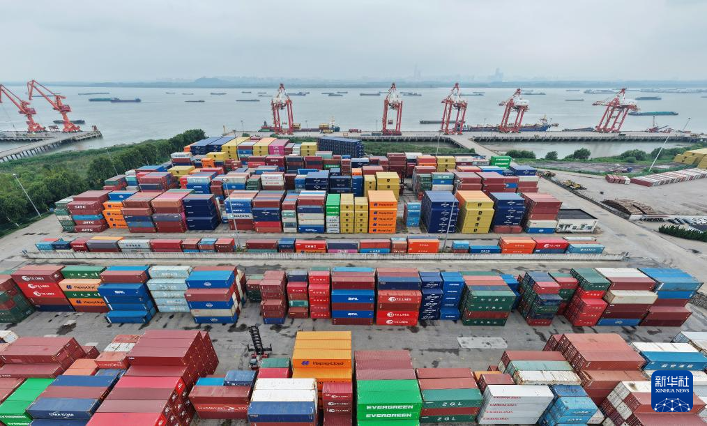 9月8日拍攝的江蘇省揚(yáng)州港集裝箱堆場(chǎng)(無(wú)人機(jī)照片)。