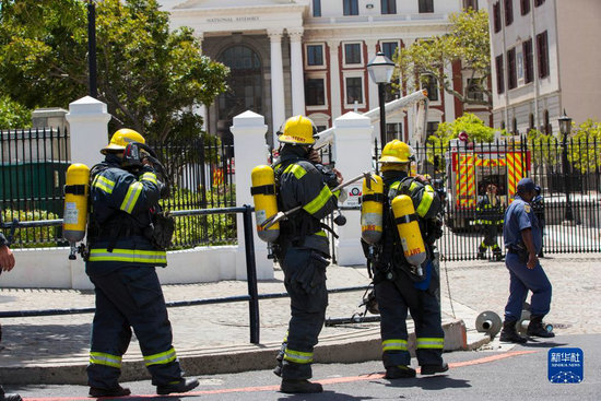 1月2日,消防員準備進入南非開普敦的議會。新華社發(fā)(弗朗西斯科·斯卡巴 攝)