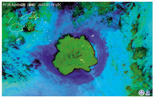 ▲這是中國氣象局提供的1月15日風云三號E星多通道合成圖。圖中顯示,湯加火山噴發(fā)時形成的火山灰蘑菇云紋理結(jié)構(gòu)清晰可見,形成直徑近500公里的傘形云團,傘形云團周邊出現(xiàn)環(huán)狀的沖擊波,向四周擴散?! ⌒氯A社發(fā)(中國氣象局供圖)