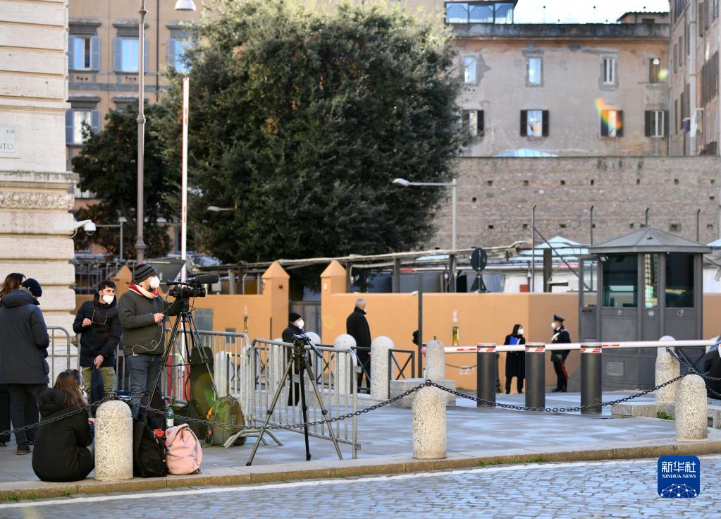 1月25日,在意大利羅馬,媒體記者聚集在眾議院外的“免下車”投票區(qū)域外。