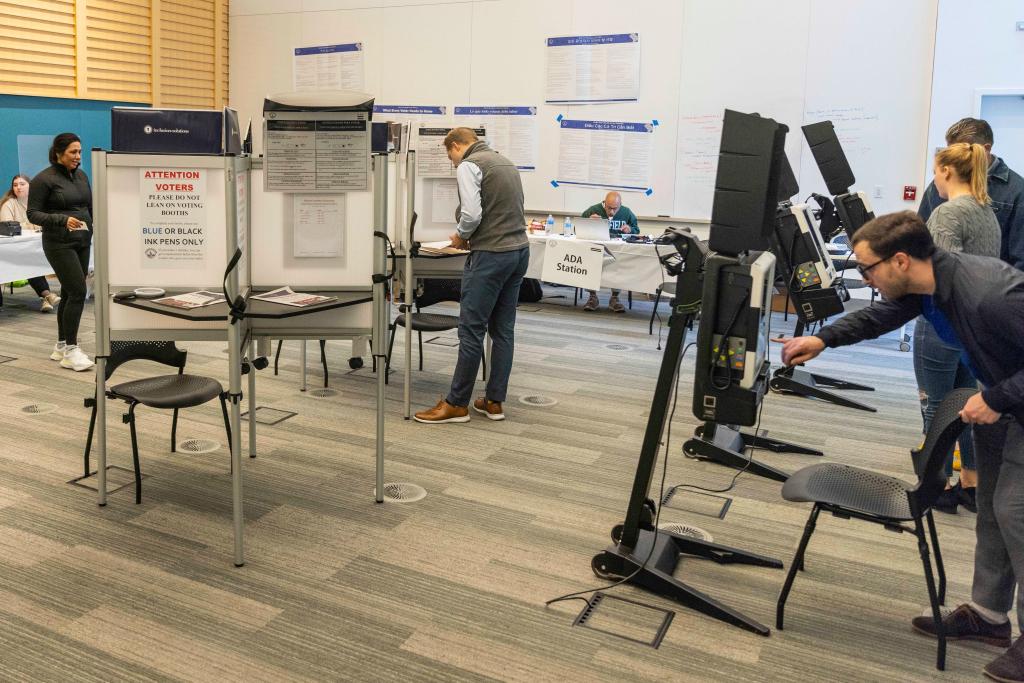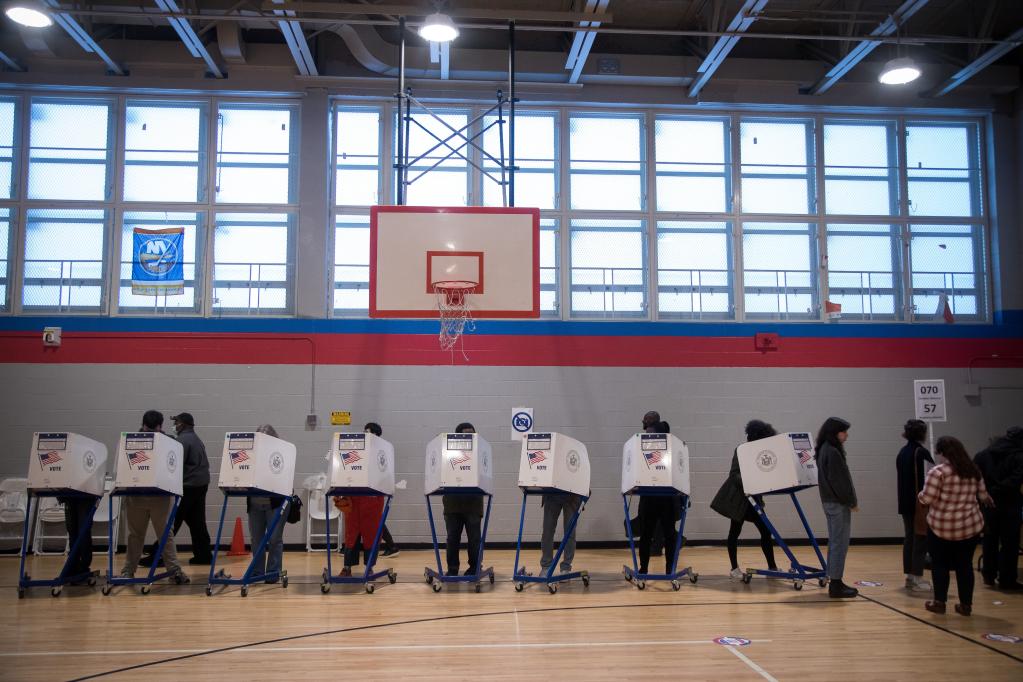 11月8日,選民在美國紐約的一處投票站參加中期選舉投票。新華社發(fā)(郭克攝)