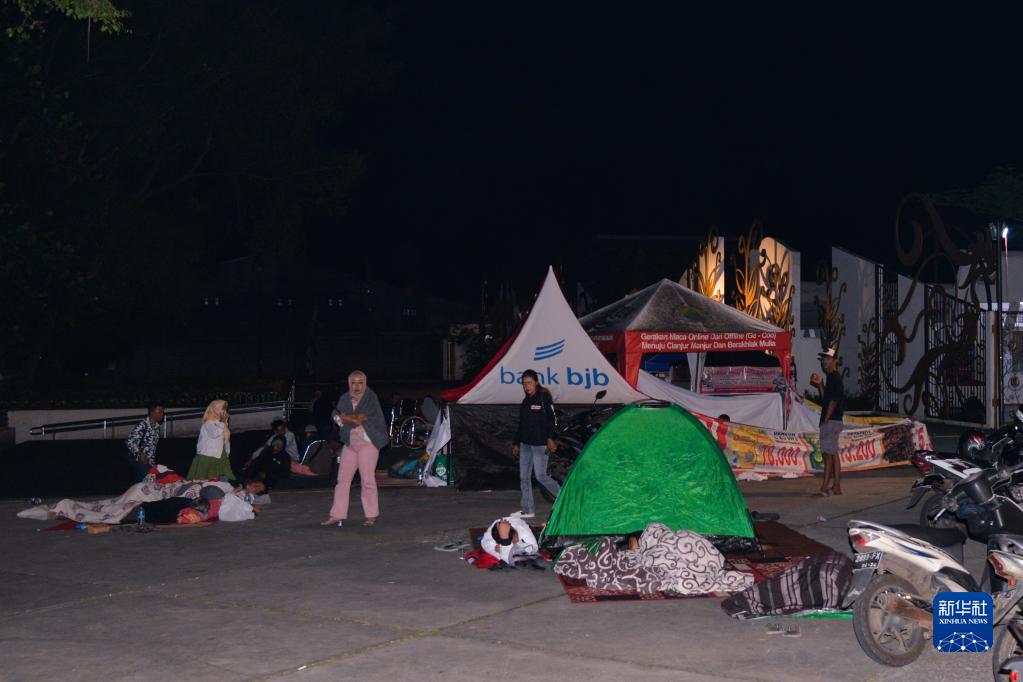 11月22日凌晨,在印度尼西亞西爪哇省展玉地區(qū),受地震影響的人們?cè)趹敉庑菹?。新華社記者徐欽攝