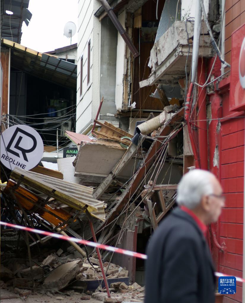11月23日,行人走在土耳其迪茲杰地震后的大街上。