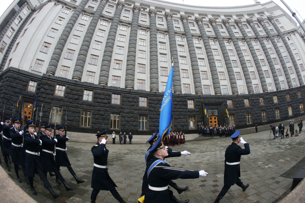 2月16日,在烏克蘭首都基輔,烏國(guó)民衛(wèi)隊(duì)儀仗隊(duì)行進(jìn)至烏克蘭政府辦公大樓。(新華社發(fā),謝爾蓋·斯塔拉斯堅(jiān)科攝)