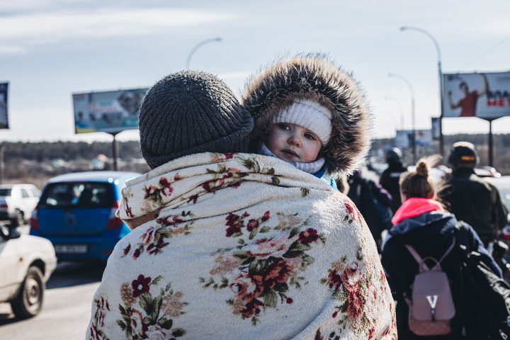3月11日,人們在烏克蘭基輔州伊爾平通過人道主義通道撤離。新華社發(fā)(迭戈·埃雷拉攝)