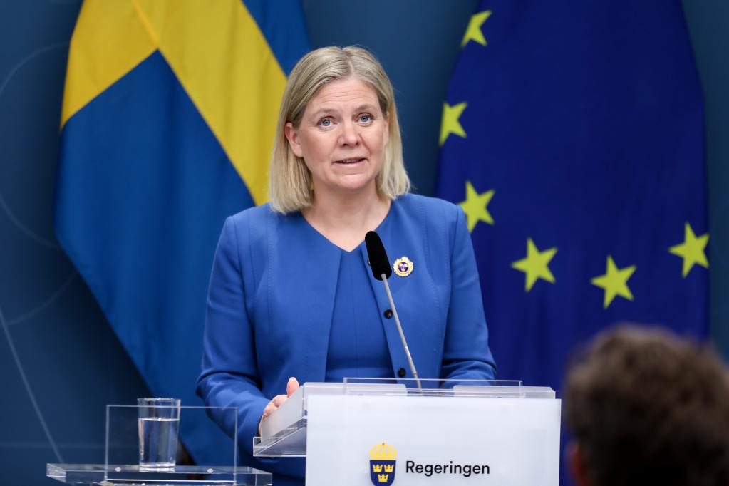5月16日,瑞典首相安德松在斯德哥爾摩舉行的新聞發(fā)布會上講話。新華社發(fā)(瑞典政府供圖/寧尼·安德松攝)