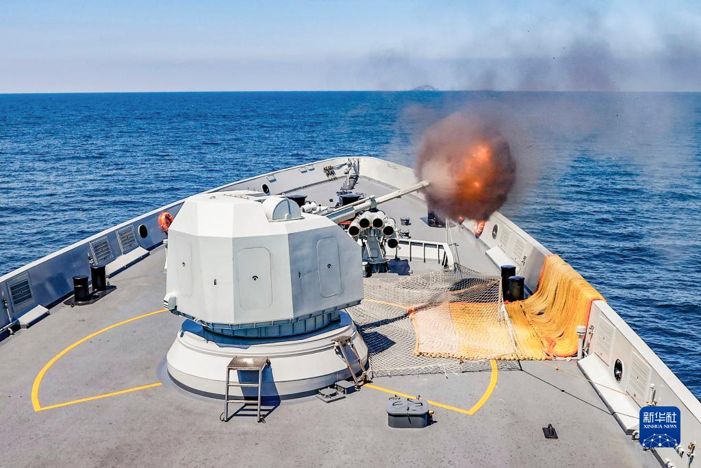 8月17日至20日,“國際軍事比賽-2022”“海洋之杯”比賽在山東青島附近海域進(jìn)行。這是中方參賽艦臨沂艦在艦炮防空反導(dǎo)課目中進(jìn)行主炮射擊(8月17日攝)。新華社發(fā)(劉再耀 攝)