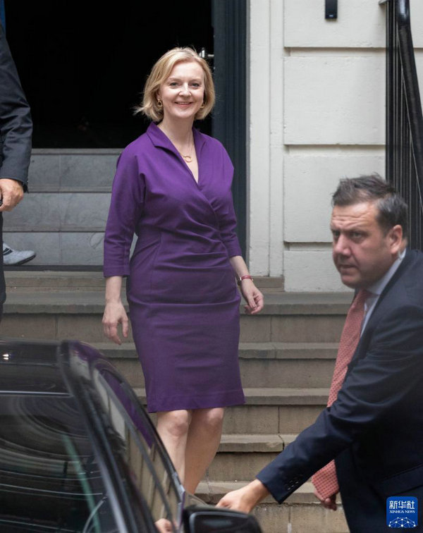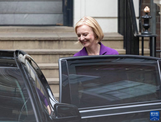 9月5日,在英國倫敦,當(dāng)選英國保守黨新黨首的伊麗莎白·特拉斯離開保守黨總部。新華社發(fā)
