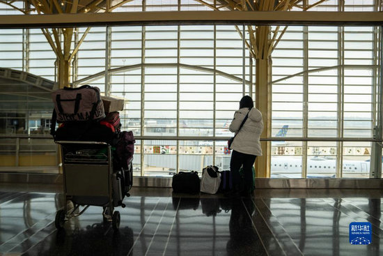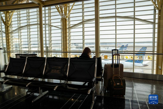 1月11日,一名旅客在美國弗吉尼亞州阿靈頓的里根國家機場等待。新華社記者 劉杰 攝