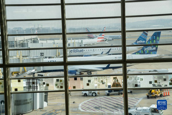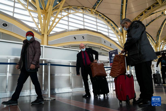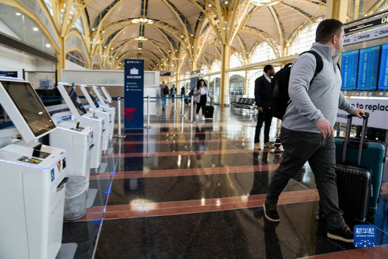 1月11日,旅客在美國弗吉尼亞州阿靈頓的里根國家機場等待。新華社記者 劉杰 攝
