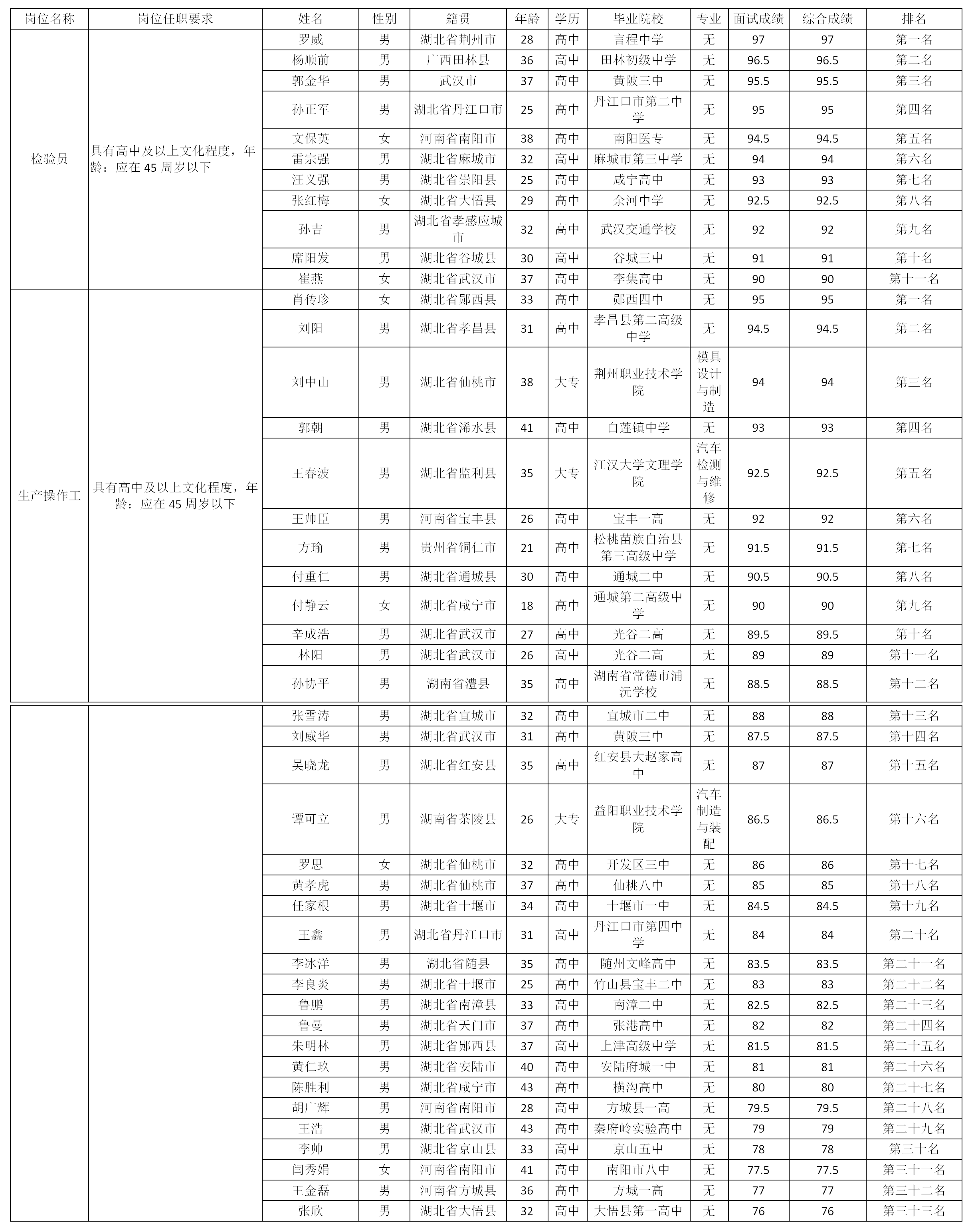 根據(jù)四川波鴻實業(yè)有限公司發(fā)布的招聘公告及招聘相關(guān)規(guī)定,經(jīng)面試程序,現(xiàn)將威斯卡特工業(yè)(中國)有限公司一線崗位面試成績予以公示。