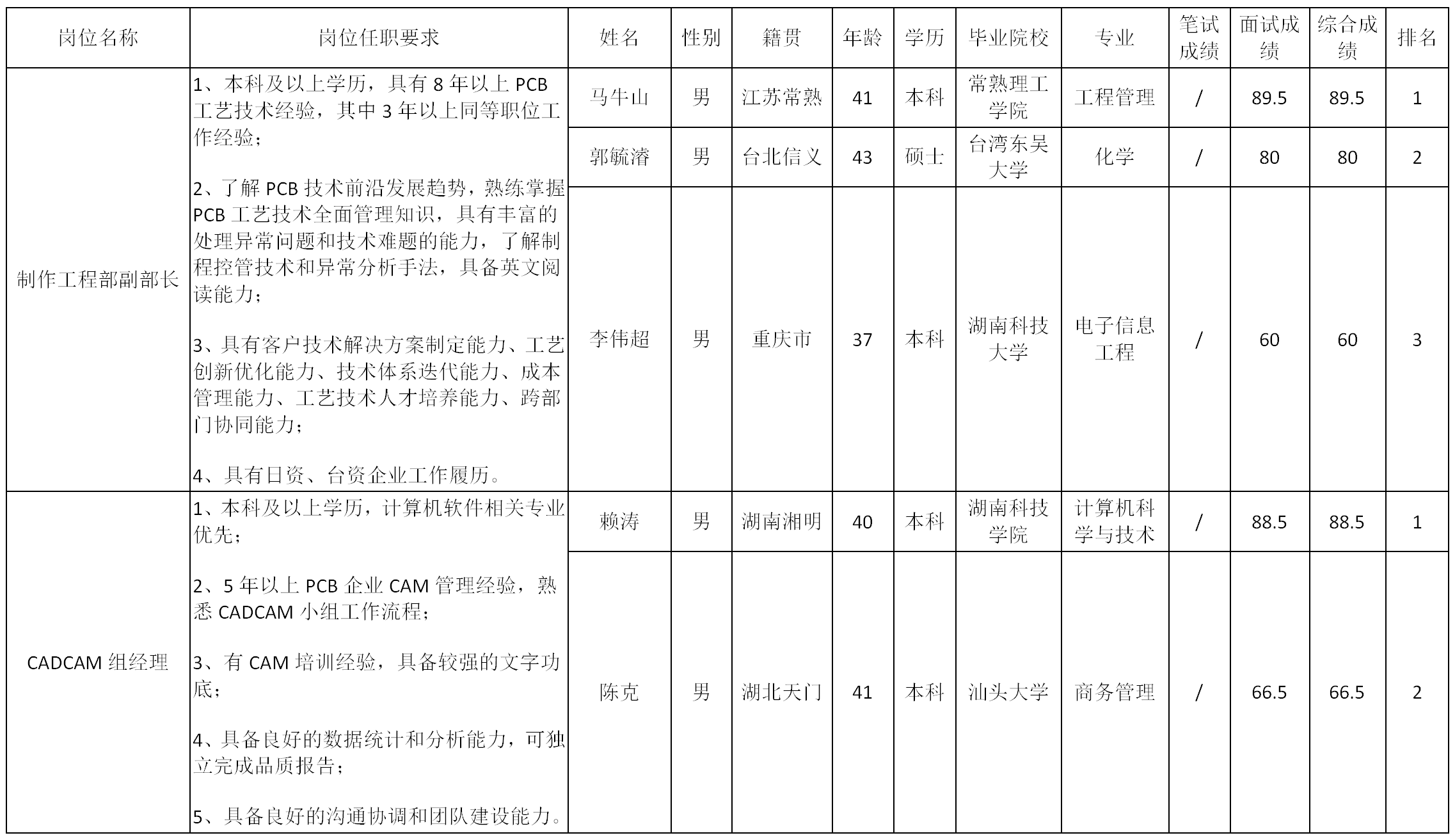 根據(jù)廣東依頓電子科技股份有限公司發(fā)布的招聘公告及招聘相關(guān)規(guī)定,經(jīng)筆試、面試等程序,現(xiàn)將筆試(面試)成績(jī)予以公示。