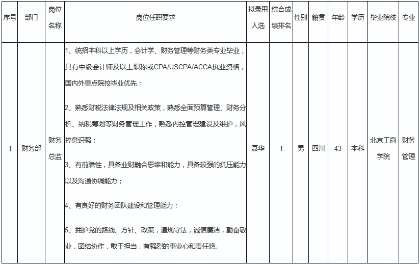 根據(jù)深圳市九洲智和科技有限公司發(fā)布的招聘公告及招聘相關規(guī)定,經(jīng)筆試、面試、考察、體檢等程序,擬錄用聶華同志到深圳市九洲智和科技有限公司工作,現(xiàn)予以公示,具體情況如下:
