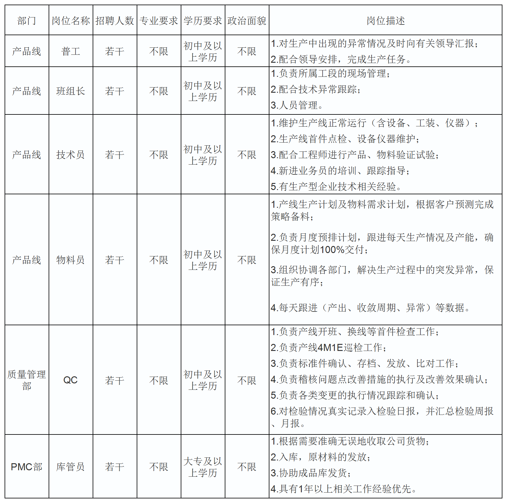 2.教育背景:此招聘公告的所有崗位應(yīng)具有初中及以上文化程度,其中庫管員崗位應(yīng)具有大專及以上文化程度;