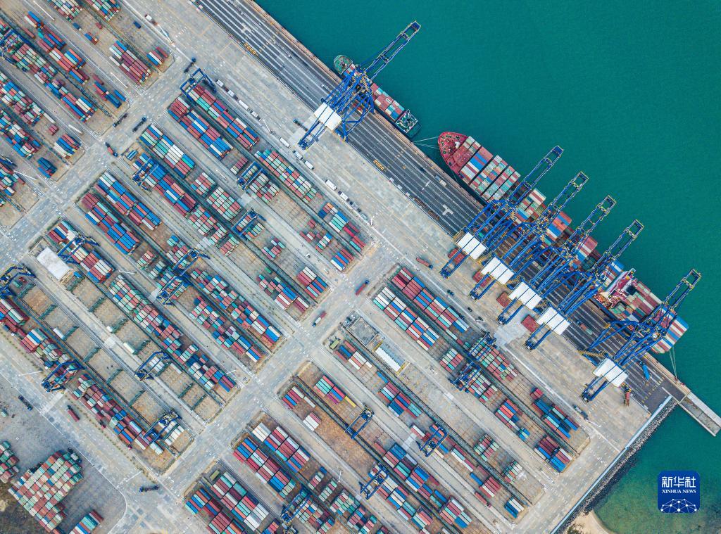 在海南環(huán)新英灣地區(qū)拍攝的洋浦國際集裝箱碼頭(無人機照片,2月28日)。新華社記者 蒲曉旭 攝