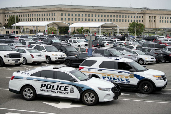 這是2021年8月3日在美國(guó)弗吉尼亞州阿靈頓的五角大樓附近拍攝的警車。新華社記者劉杰攝