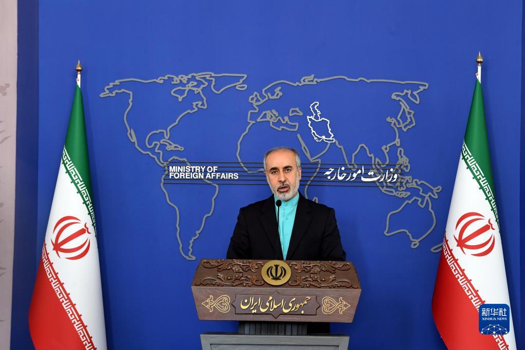 4月17日,在伊朗首都德黑蘭,伊朗外交部發(fā)言人卡納尼在例行記者會上。新華社記者 沙達提 攝