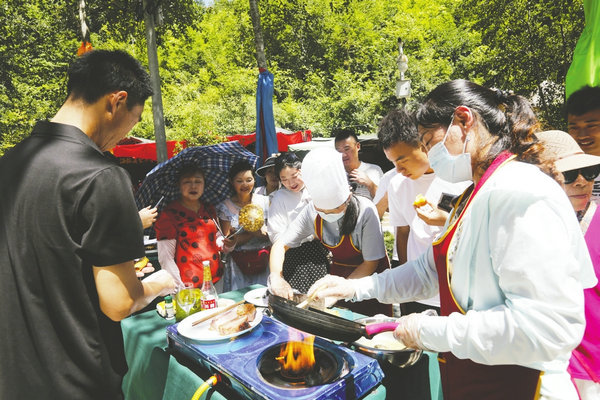 廣場(chǎng)上美食比賽攤位香氣四溢,灑啦溪景區(qū)的鵲橋、網(wǎng)紅河堤、羌廊等特色體驗(yàn)項(xiàng)目前聚集了眾多游客,大家在涼爽的小溪中踩水、打水槍、撐竹筏,品嘗美食,盡情享受玩水樂(lè)趣,整個(gè)山谷充滿歡樂(lè)的氣息。
