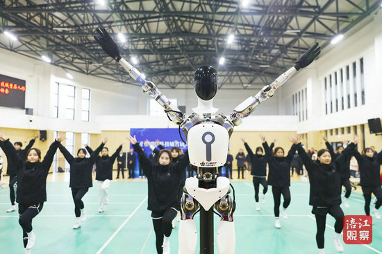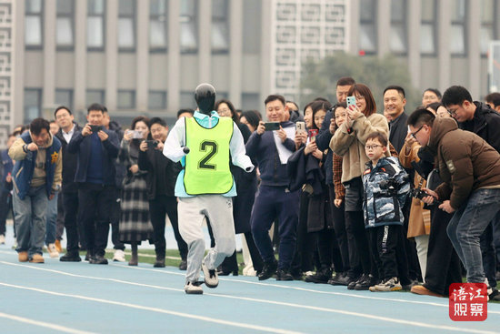 23日下午,云泉路學(xué)校運(yùn)動(dòng)場(chǎng)人潮涌動(dòng),大家的目光紛紛聚焦在跑道起點(diǎn),一場(chǎng)特別的“人機(jī)接力賽”即將開(kāi)始:兵裝自動(dòng)化所公司的人形機(jī)器人D11要和綿陽(yáng)實(shí)驗(yàn)高級(jí)中學(xué)田徑隊(duì)運(yùn)動(dòng)員完成接力奔跑。