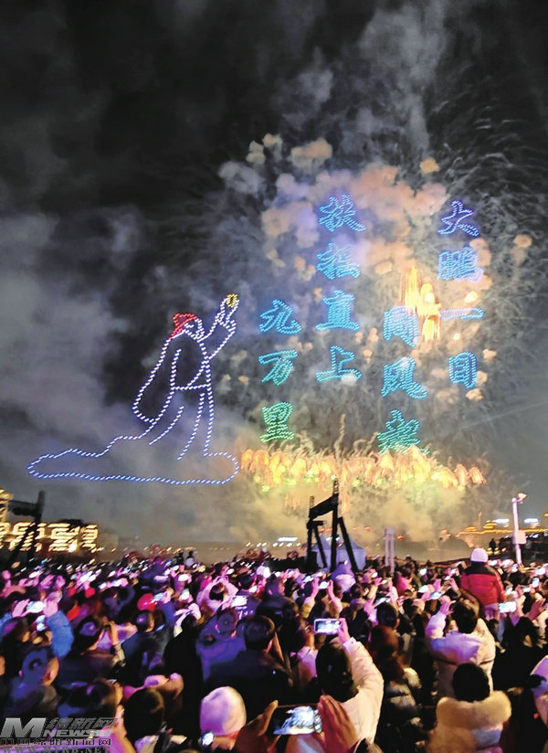 一張張笑臉上寫滿了幸福和喜悅。大家紛紛舉起手機、相機記錄美麗時刻,在五彩斑斕的焰火中憧憬新年的到來。