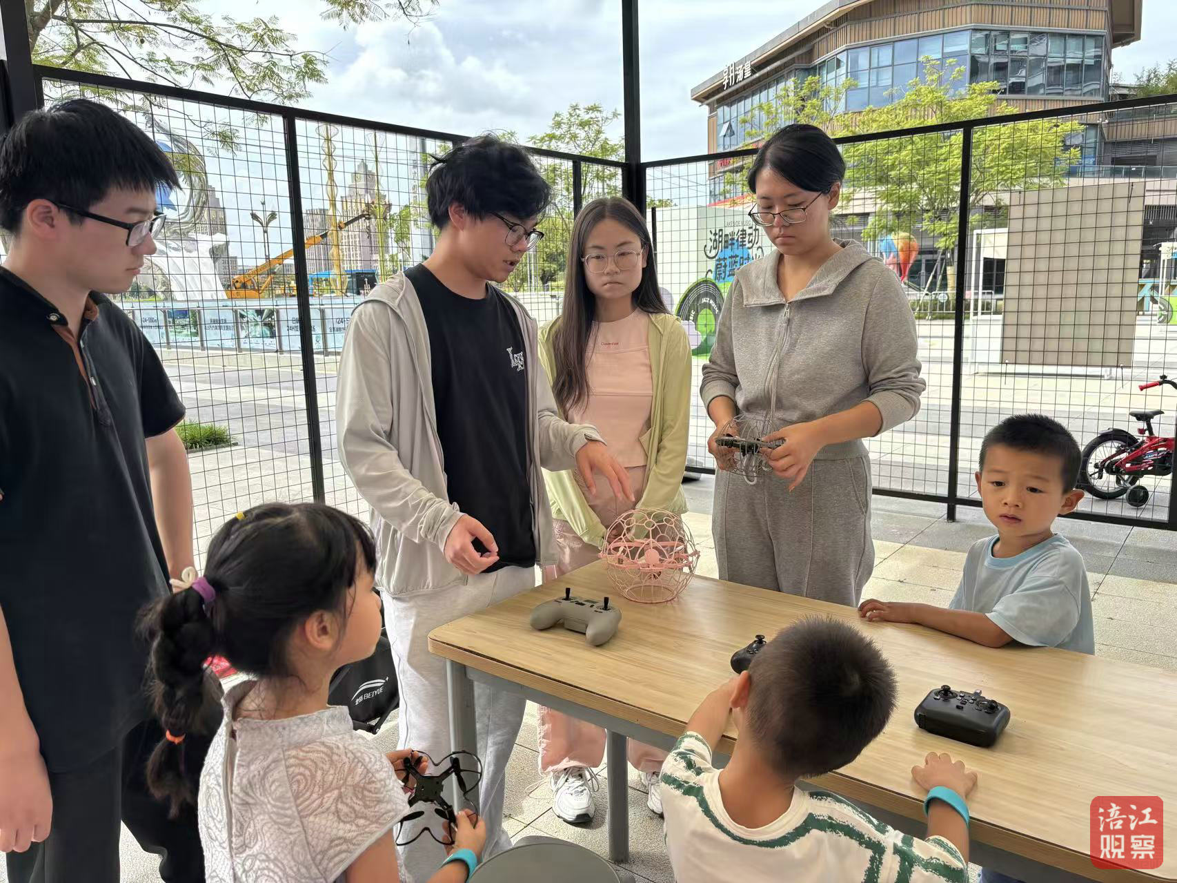 10月3日上午,活動現(xiàn)場科技氛圍濃厚??破諈^(qū)工作人員手把手講解無人機構(gòu)造原理、飛行知識,用通俗語言將專業(yè)內(nèi)容轉(zhuǎn)化得生動有趣;障礙穿越區(qū),“空中通道”頗具挑戰(zhàn),參與者專注操控遙控器,調(diào)整無人機高度、轉(zhuǎn)向避障,孩子在引導(dǎo)下完成動作,滿臉興奮。