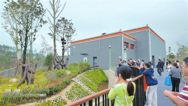 游客在北川大熊貓動(dòng)植物園內(nèi)觀看熊貓