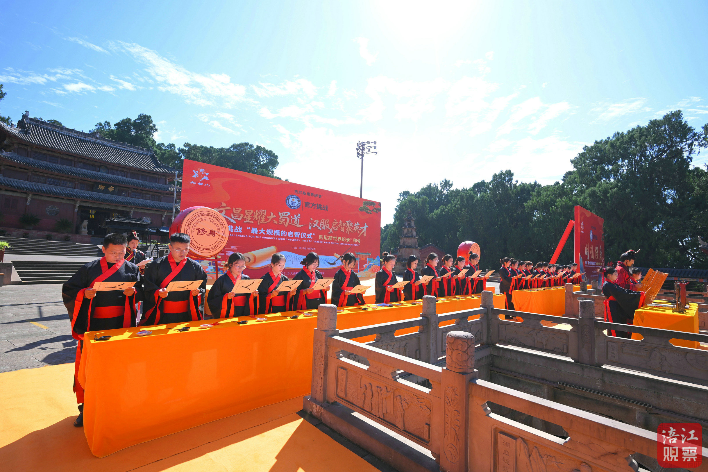 10月13日,以“文昌星耀大蜀道·漢服啟智聚英才”為主題的“文昌開筆禮”千人開智大典在綿陽梓潼七曲山舉行。