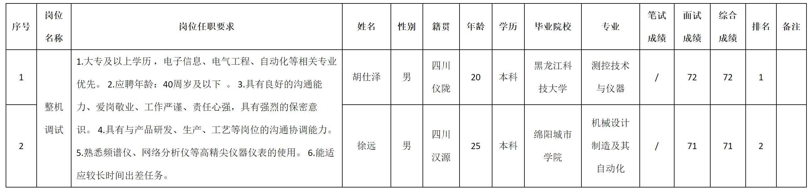 根據(jù)四川九洲防控科技有限責(zé)任公司發(fā)布的招聘公告及招聘相關(guān)規(guī)定,現(xiàn)將測(cè)試成績予以公示。