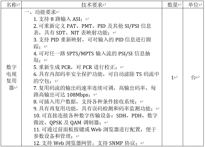 項(xiàng)目名稱:數(shù)字電視復(fù)用器采購