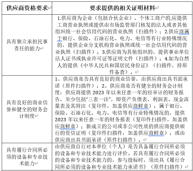 三、供應(yīng)商應(yīng)提供的資格證明材料