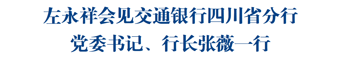 綿陽新聞網(wǎng)訊 10月14日,省委常委、市委書記左永祥會見交通銀行四川省分行黨委書記、行長張薇一行。會見中,雙方圍繞搶抓成渝地區(qū)雙城經(jīng)濟圈建設等重大機遇,深化銀政合作,以優(yōu)質金融服務支持綿陽重大項目建設和重點產(chǎn)業(yè)發(fā)展,持續(xù)加強在科技金融、惠民就醫(yī)、消費金融、跨境金融等領域的務實合作,助力綿陽加快建成省域經(jīng)濟副中心等交換了意見。