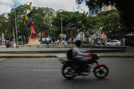 9月22日,在委內(nèi)瑞拉首都加拉加斯,車流和行人經(jīng)過(guò)市中心的交通干道。新華社發(fā)(馬科斯·薩爾加多攝)