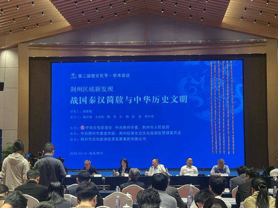 “荊州區(qū)域新發(fā)現(xiàn)戰(zhàn)國秦漢簡牘與中華歷史文明”學(xué)術(shù)會議10月14日在荊州舉行。新華社記者喻佩 攝