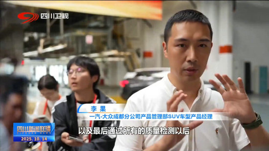 一汽-大眾成都分公司產(chǎn)品管理部SUV車型產(chǎn)品經(jīng)理 李果:當(dāng)每57秒出來一臺車以后,會經(jīng)過我們的電檢、轉(zhuǎn)轂、尾氣以及最后通過所有的質(zhì)量檢測以后,完成合格證的打印。