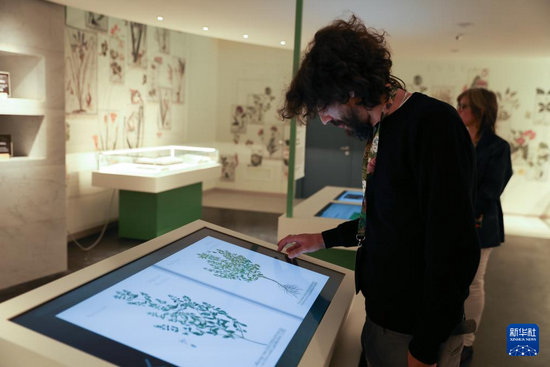 10月16日,在意大利羅馬,嘉賓在聯(lián)合國(guó)糧食農(nóng)業(yè)博物館觀看植物圖鑒。