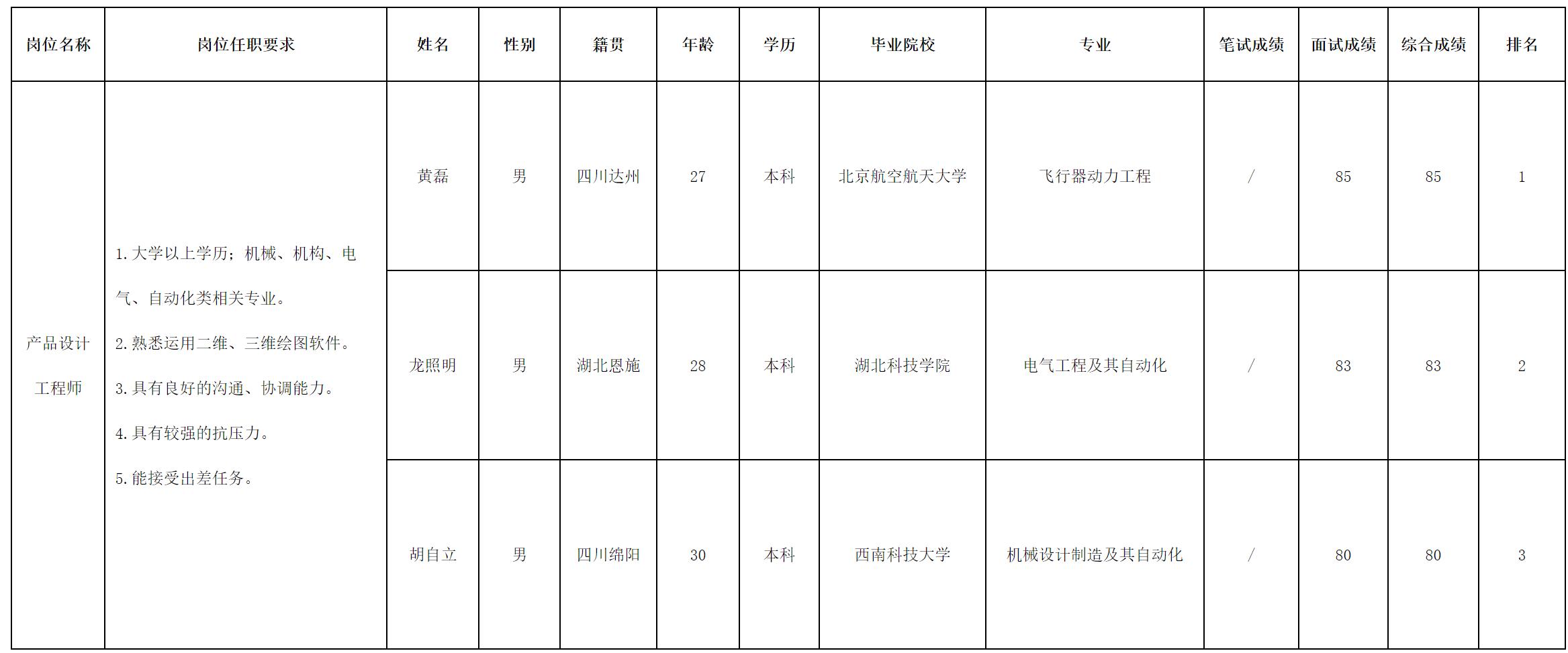 根據(jù)四川華豐科技股份有限公司發(fā)布的招聘公告及招聘相關(guān)規(guī)定,現(xiàn)將測(cè)試成績(jī)予以公示。