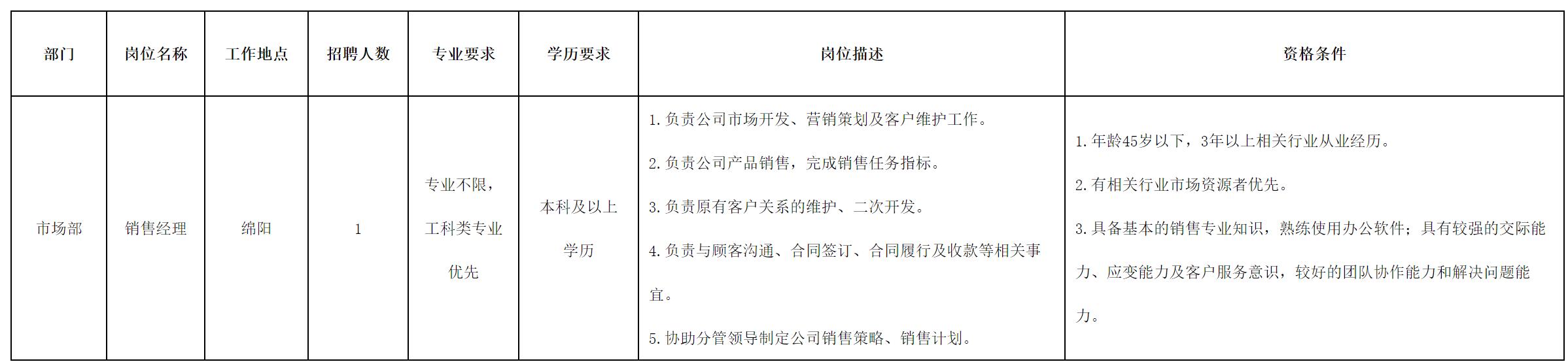 四川長(zhǎng)虹電子科技有限公司(國(guó)營(yíng)第七八〇廠)始建于1958年,是國(guó)家“一五”期間的156個(gè)重點(diǎn)項(xiàng)目之一,是我國(guó)第一個(gè)機(jī)載火控雷達(dá)科研生產(chǎn)基地,位于綿陽(yáng)市經(jīng)濟(jì)技術(shù)開(kāi)發(fā)區(qū)。公司注冊(cè)資本1.7億元人民幣,為國(guó)有獨(dú)資企業(yè)。公司以高端光電儀器和高端光電裝備為主線,主要從事重力測(cè)量、光電探測(cè)和光電告警領(lǐng)域產(chǎn)品研發(fā)和生產(chǎn)。因業(yè)務(wù)發(fā)展需要,現(xiàn)誠(chéng)聘英才,招聘崗位及要求如下: