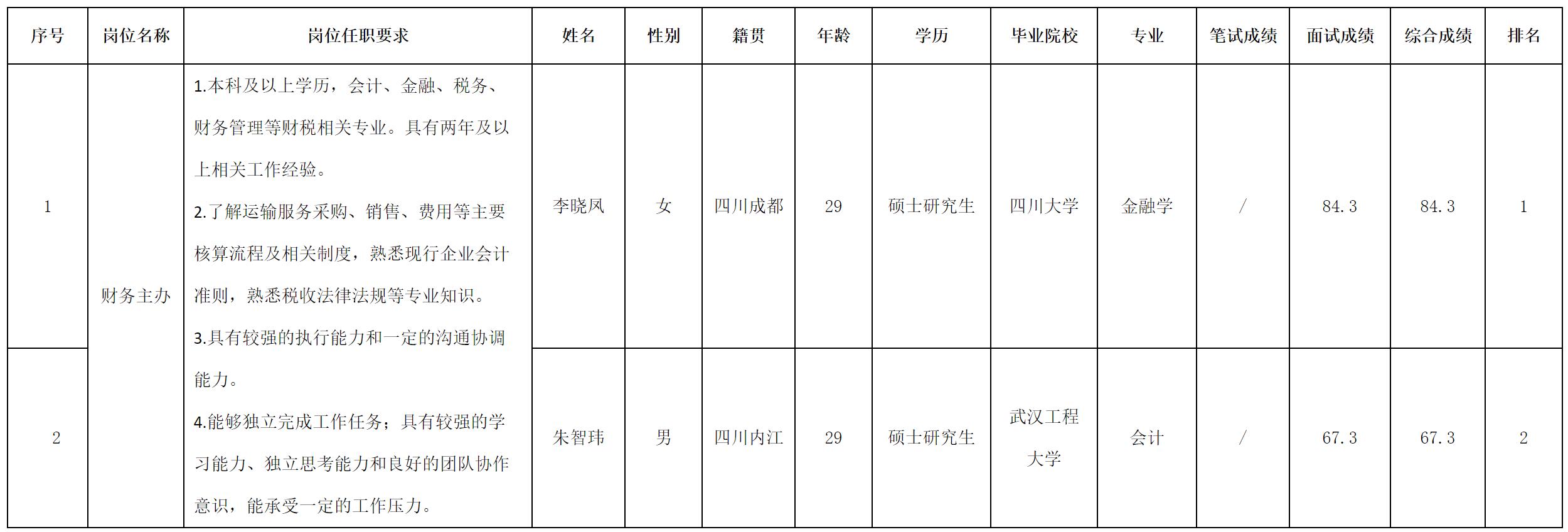 根據(jù)四川長虹民生物流股份有限公司發(fā)布的招聘公告及招聘相關(guān)規(guī)定,現(xiàn)將測試成績予以公示。