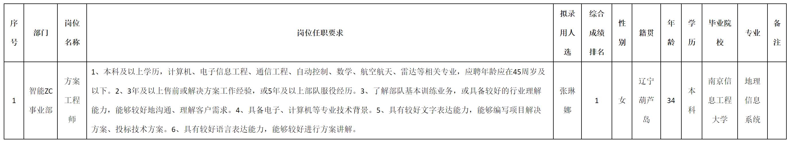 根據(jù)四川九洲投資控股集團(tuán)有限公司軟件與數(shù)據(jù)智能軍團(tuán)發(fā)布的招聘公告及招聘相關(guān)規(guī)定,經(jīng)測試、考察、體檢等程序,擬錄用張琳娜同志到四川九洲投資控股集團(tuán)有限公司軟件與數(shù)據(jù)智能軍團(tuán)工作,現(xiàn)予以公示,具體情況如下: