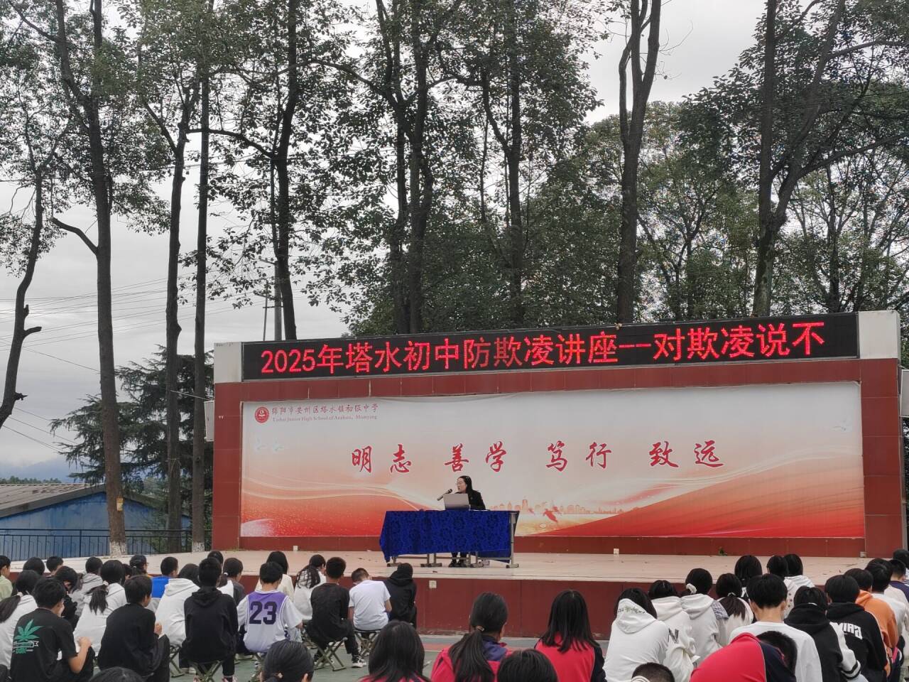 為了營造和諧安全的校園環(huán)境,守護(hù)學(xué)生健康成長,10月17日上午,安州區(qū)塔水鎮(zhèn)初級(jí)中學(xué)在內(nèi)操場(chǎng)開展了以“警校攜手筑防線,向校園欺凌‘亮劍’”為主題的2025年秋防欺凌主題教育講座活動(dòng),特別邀請(qǐng)?jiān)撔7ㄖ聘毙iL、安州區(qū)人民法院孫洋法官擔(dān)任主講,為全校學(xué)生上了一堂生動(dòng)的法治教育課。