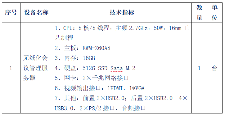 1.本項目采購的設(shè)備技術(shù)參數(shù)須不低于以下要求: