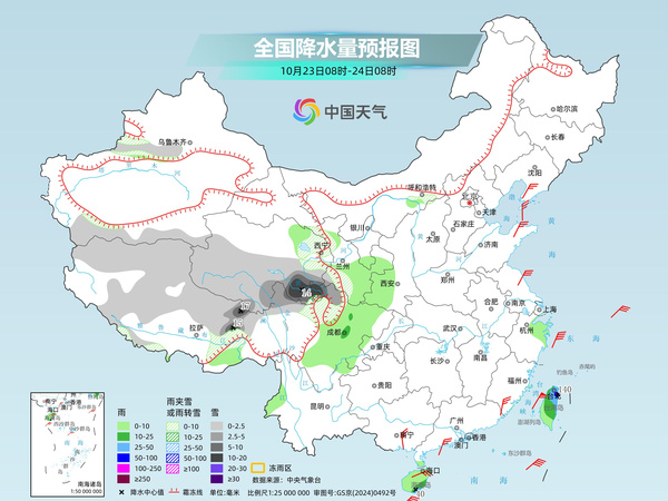 明后天,青藏高原等地有一次雨雪天氣過(guò)程,西藏東部、青海東部和南部、川西高原中北部有小到中雪或雨夾雪,局地大到暴雪。同時(shí),四川盆地、陜西等地雨水也將增多。