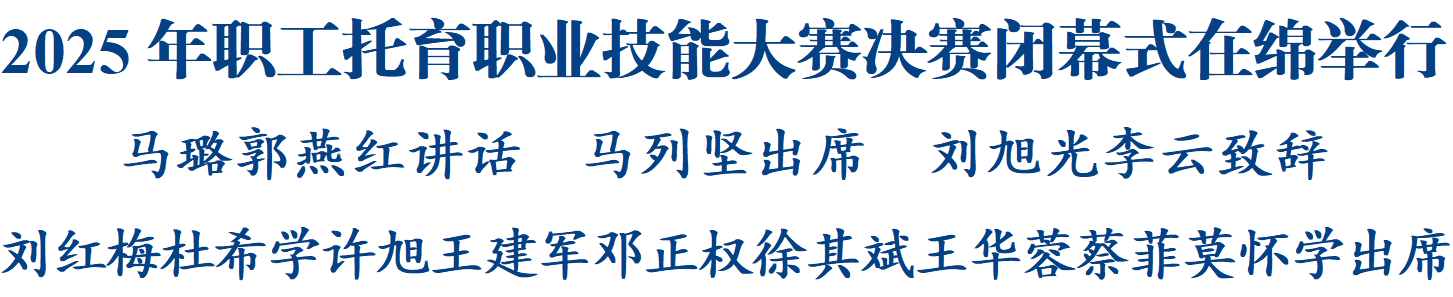 10月23日,以“‘托’成長希望·‘育’美好未來”為主題的2025年職工托育職業(yè)技能大賽決賽閉幕式在綿舉行。全國總工會(huì)副主席、書記處書記、黨組成員馬璐講話并宣布閉幕,國家衛(wèi)生健康委副主任、黨組成員郭燕紅講話,全國婦聯(lián)書記處書記、黨組成員馬列堅(jiān)出席,省政協(xié)副主席劉旭光,市委副書記、市長李云致辭?! ?/p>