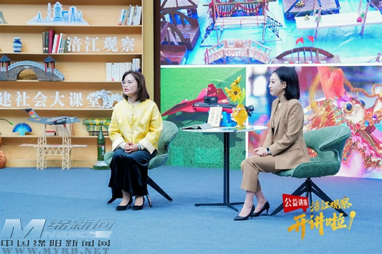 李海燕(左)在“涪江觀察開講啦”公益講座節(jié)目現(xiàn)場(chǎng)