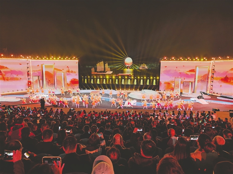此次活動(dòng)的舞臺(tái)設(shè)計(jì)堪稱一大亮點(diǎn)。超1000平方米的水上舞臺(tái)融入了LED屏幕、激光投影、AI、機(jī)械裝置、無(wú)人機(jī)等多種技術(shù)手段,為觀眾打造了一場(chǎng)全新的視聽(tīng)盛宴。