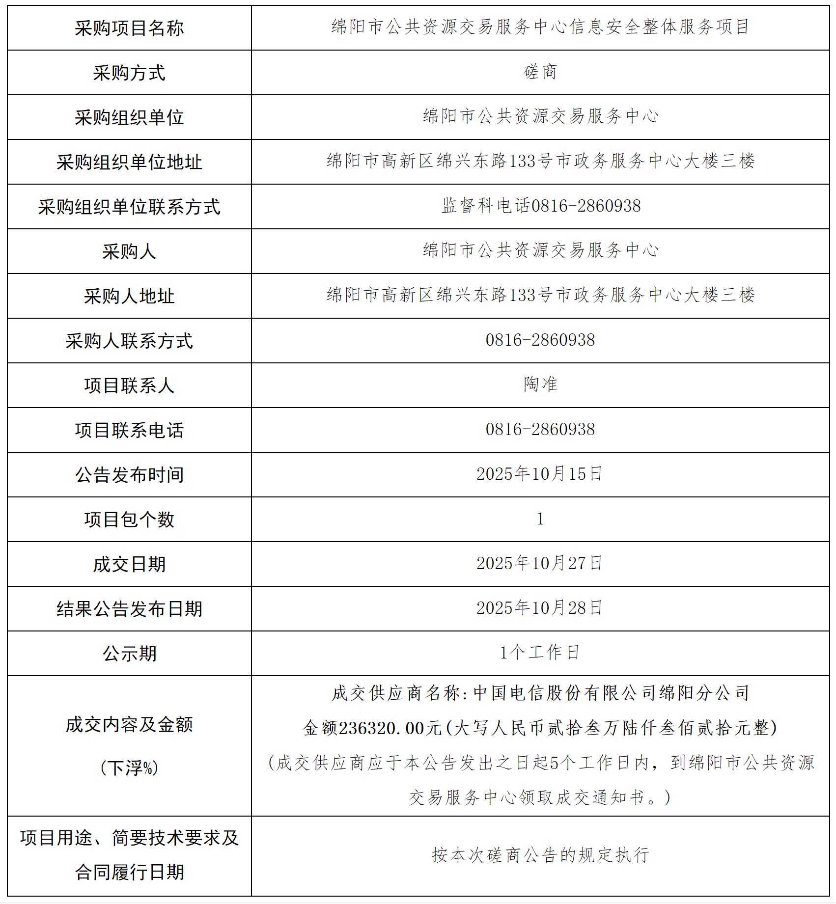 綿陽市公共資源交易服務(wù)中心關(guān)于“信息安全整體服務(wù)”項(xiàng)目采購結(jié)果的公告