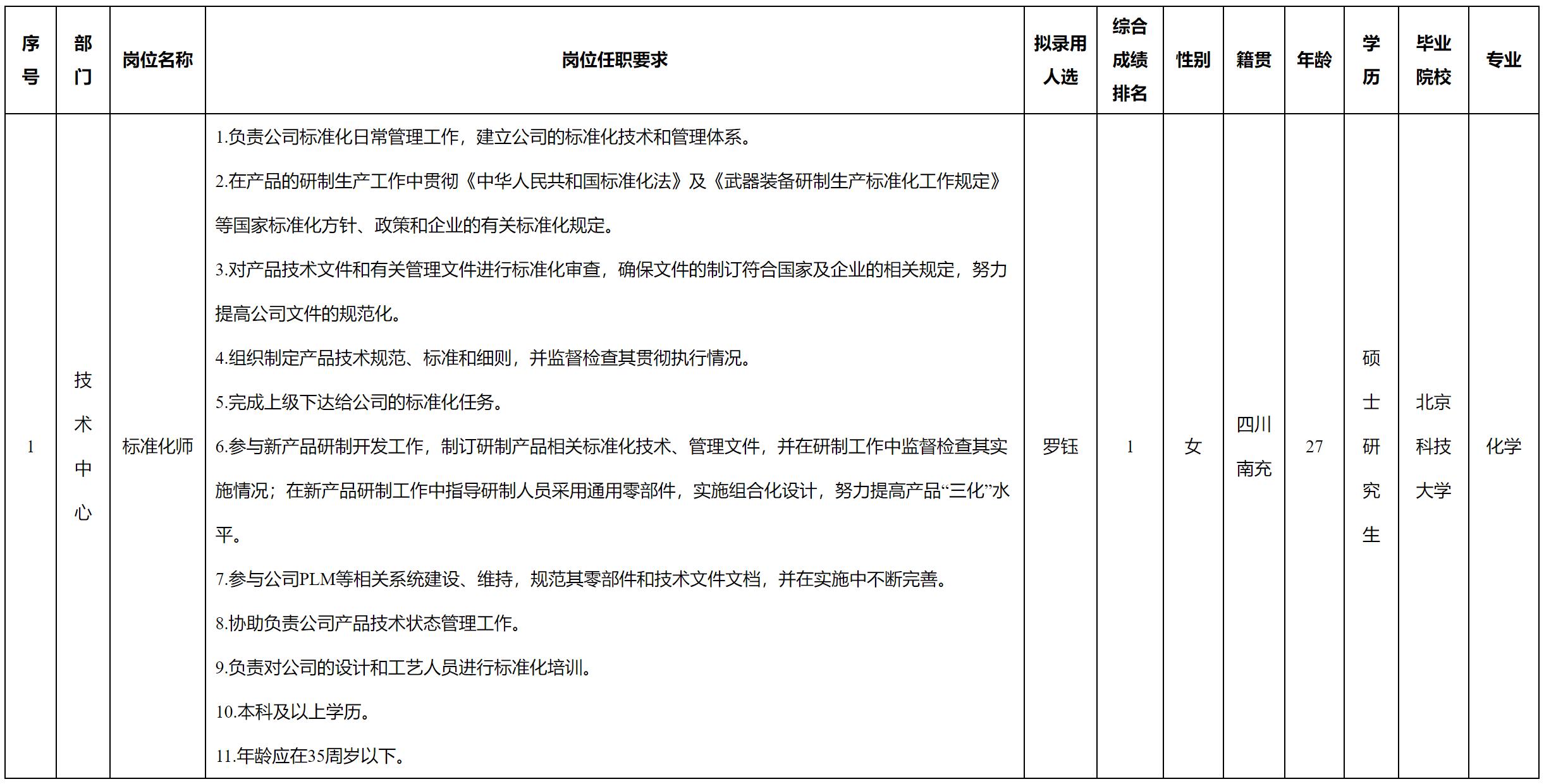 根據(jù)四川長虹電源股份有限公司發(fā)布的招聘公告及招聘相關規(guī)定,經(jīng)測試、考察、體檢等程序,擬錄用羅鈺同志到我司工作,現(xiàn)予以公示,具體情況如下: