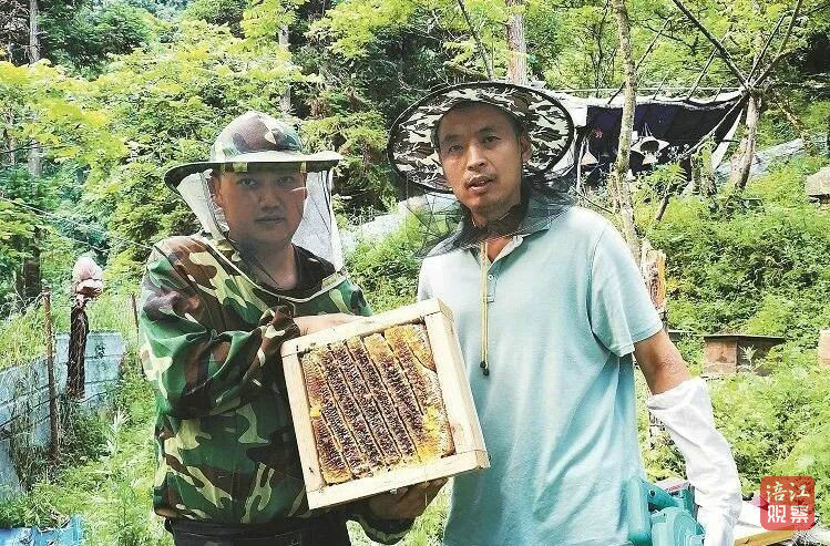 “蜜蜂博士”張玉波(右)到農(nóng)戶的蜂場指導農(nóng)戶取蜜