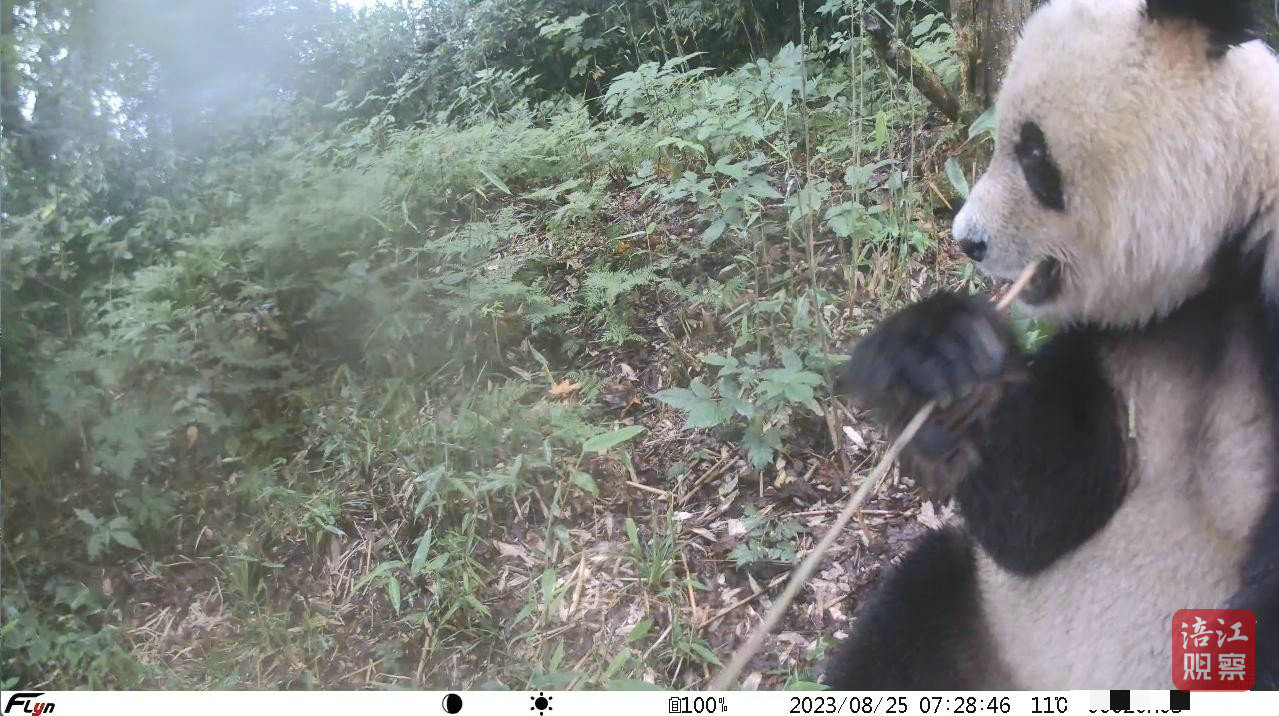 大熊貓國家公園平武片區(qū)紅外相機拍攝的大熊貓吃竹子
